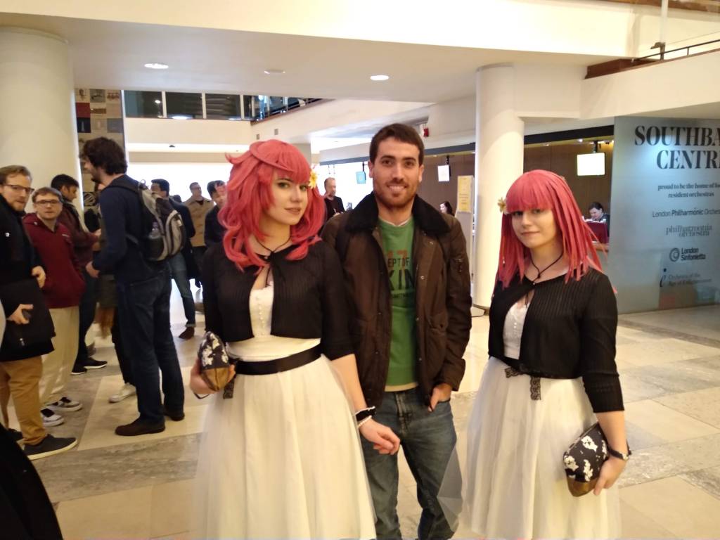 Debido a la alta demanda y a la rapidez con la que se terminaron las entradas, la capital inglesa tuvo la suerte de presenciar dos pases en el mismo día. El primero empezaba a las 15 pm (una hora más en España), y nosotros no queríamos perder detalle por lo que estábamos allí desde las 12:30, a pesar de que nuestro concierto era el segundo pase, a las 20 pm. Lo primero que decidimos hacer fue dar un paseo por la bonita zona en la que está situado el Royal Festival Hall. Debido a su cercanía con el famoso London Eye, el ambiente estaba muy animado. Familias paseando, niños disfrutando, empezábamos a ver los primeros cosplays por la calle…Nos permitimos un paseo a orillas del Támesis disfrutando de un mercadillo de segunda mano y de un Skate Park antes de ponernos a buscar algo para comer. Por suerte, también estábamos rodeados de opciones, muchos restaurantes e incluso un montón de puestos de comida rápida de todo tipo que permitían a los asistentes comer mientras esperaban en la cola para la tienda con el merchan del concierto.