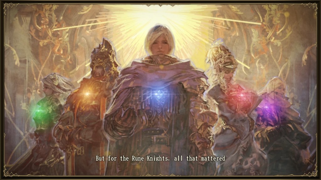 Una vez nos hayamos decantado por una nación, veremos una pequeña historia sobre la nación que hemos elegido, sobre su personaje principal y sobre sus compañeros más cercanos, la cual nos hace de introducción para ponernos en situación al empezar la guerra. Veremos diálogos entre distintos personajes, y aunque no ofrece una historia como la de un RPG clásico, dichos diálogos son interesantes para conocer la historia de los personajes, y de Runersia.