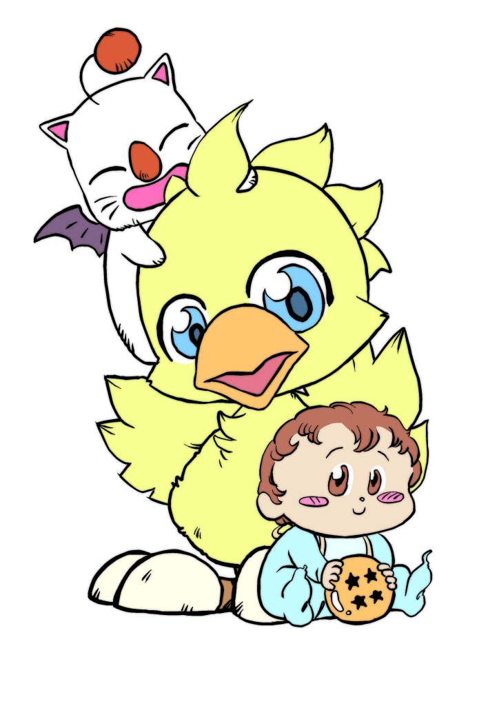 Y la más especial cuando le hice un bodypaint de Goku bebé a mi mujer durante el embarazo…¡disfruté mucho imaginando al pequeño saiyan dentro de la barriga! Y éste complementado con el primer dibujo que hice a mi hijo aún teniendo 5 meses en la barriga. Ya lo imaginé rodeado de fantasía junto a un Moguri, un Chocobo y una Dragon Ball en las manos. Esa ilustración es para mi el primer regalo que le hice a mi pequeño.
