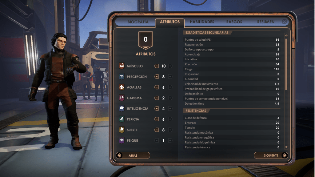 También podemos repartir otra serie de puntos para determinar la habilidad del personaje con armas cuerpo a cuerpo, de largo/corto alcance e incluso de habilidades psíquicas. Esto nos permitirá elegir en qué queremos que se especialice nuestro personaje en combate. También hemos de elegir una de las cinco facciones que hay en Encased. Cada una tiene un papel determinado, por ejemplo: el Ala Negra representa a las fuerzas de seguridad. Una vez tengamos todo listo… ¡Comenzamos la historia!