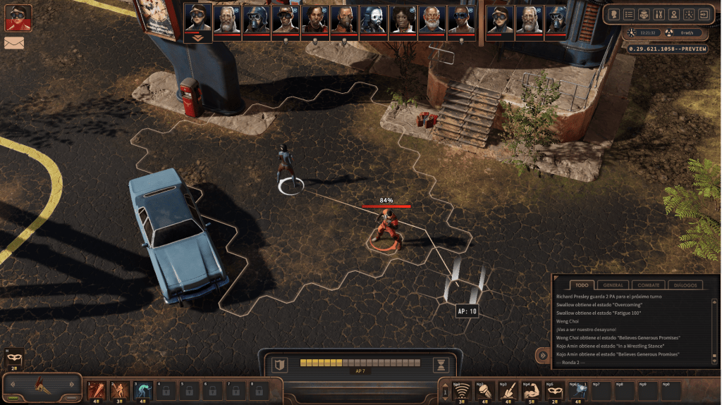 El combate es táctico y por turnos, en el mapa de juego. Contaremos con una serie de puntos de acción que podemos gastar caminando, ejecutando un ataque, usar items, o adoptar una posición defensiva. En cuanto a animaciones, nos ha parecido un poco plano en cuanto a ausencia de estados alterados y efectos especiales.