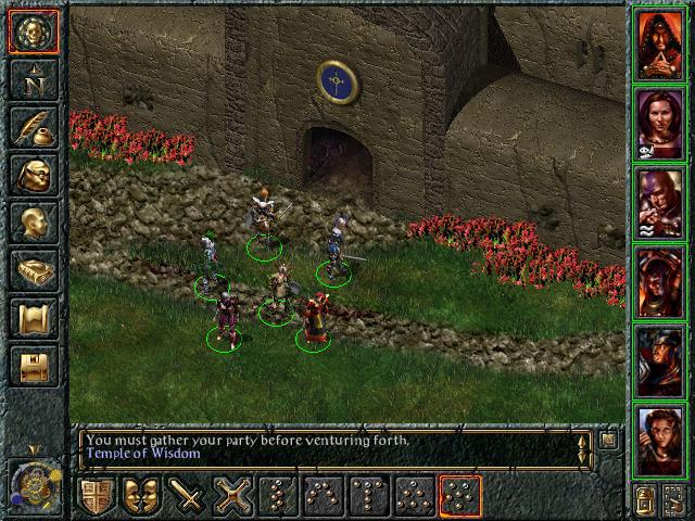 Vale. Pero, ¿cómo se jugaba a Baldur’s Gate? Buena pregunta. Para acercar BG a todo tipo de jugadores, Bioware diseñó un sistema de pausa táctica que permitia al jugador hacer microgestiones en la batalla. Los turnos, asaltos y tiradas de dados se automatizaban para no interrumplir el combate, pero el jugador podía pausar, elegir el siguiente hechizo o habilidad, quitar la pausa y contemplar el resultado. Además, eso permitía diseñar estrategias complejas usando las variadísimas clases y habilidades de los compañeros. Elegir a estos acompañantes no era una tarea trivial y fría, al contrario; para llevar un equipo equilibrado hacía falta pensar bien cómo quería uno afrontar los combates, además de gestionar bien la alineación del equipo para que, en un futuro, el que pensabas que era tu mejor aliado no se volviera tu enemigo. Porque allí estaban las reglas de D&D; en cada hechizo, arma, armadura, objeto… todo estaba impregnado de extensas descripciones de obligada lectura, imprescindible para formar un equipo capaz de soportar todos los combates que te ofrecía el juego (y no equiparte sin querer ningún objeto maldito, ya de paso).