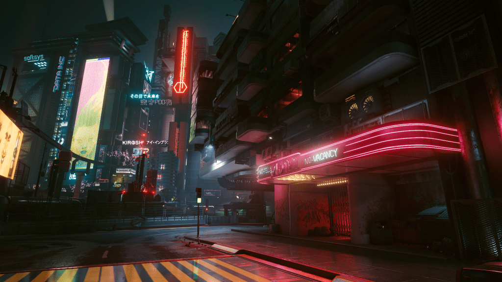 Pero Cyberpunk 2077 es mucho más que un juego bonito de ver. Lo realmente espectacular es el diseño de absolutamente todo. Ya he hablado de la enfermiza atención por el detalle, pero esto se traslada también al escenario en forma de virguerías técnicas y gráficas. Podría escribir largo y tendido sobre la barbaridad de detalles que se esconden en cada rincón de Night City: desde la monstruosidad de sus estructuras, hasta callejones que se esconden en la oscuridad; desde las Badlands hasta el núcleo urbano todo está diseñado con un talento que no sé cómo describir. Sencillamente, deambular por Night City a cualquier hora del día es una gozada.