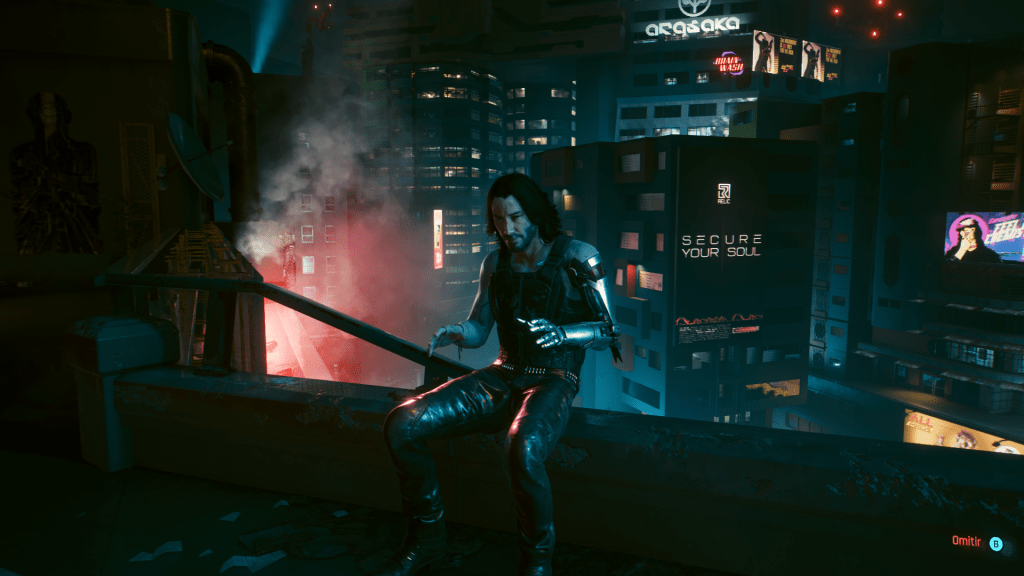 Johnny y V. V y Johnny. No pocas veces he asistido a una historia que se sostenga por un dúo de protagonistas, pero la química que tienen estos dos arrasa toda la pantalla. Johnny aporta las aristas necesarias a una historia ya de por si profunda; es el contrapunto a las cuestiones morales a las que nos enfrentamos en Night City; un rockero mal hablado y de una personalidad tan atractiva y potente que sentencia a casi todos los secundarios que conozco en cualquier videojuego. Johnny está presente en todo, no solo en el arco principal, sino también en las trabajadísimas misiones secundarias; es el apoyo emocional de un protagonista que se derrumba, que va cayendo en las oscuras alcantarillas de Night City, pero que se sostiene por los brillantes destellos de ingenio y talento en todas las apariciones de Johnny y que dan a V el empujón necesario para seguir adelante.