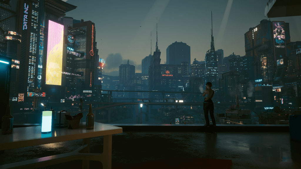 Claro, todo este derroche de talento se sostiene sobre otro pilar importante relacionado con la trama: la construcción de las escenas. Es sencillamente impresionante cómo CP2077 se las arregla para meter al jugador en la pantalla, hacerle participar en la trama y hacerle sentir culpable por el resultado. El ambiente, el guión, la construcción de frases bien escogidas, el tratamiento de la luz, los numerosos detalles… no puedo sino deshacerme en elogios ante el que es, casi probablemente, el mejor trabajo que he visto a la hora de reproducir una historia y embelesar al jugador.
