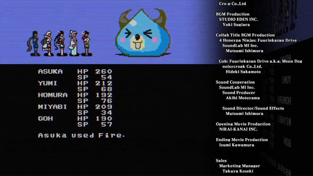 En los créditos finales encontramos un estilo retro genial que hace referencia a muchísimos juegos, y por citar uno, no podía ser de otro modo que el que hace guiño a cierta saga renombrada del mundo RPG…