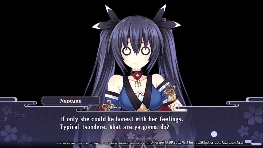 En lo relativo a guiños hay varios bastante curiosos, algunos, exportados de las sagas protagonistas, incluso. Neptune ya nos avisaba al respecto cuando nos presentó a sus compañeras y a ella misma…