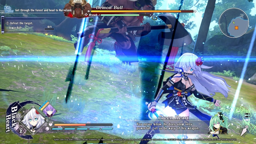 El objetivo de la Legión es ni más ni menos que declarar una Súper Guerra Ninja para escoger cuál es la escuela ninja más poderosa, invitando de paso a aquellos ninja sin escuela o que quieran unirse a la suya. La Daimyo de Heartland, Histoire, conocida cariñosamente como Histy (Neptune tiene motes para todas) les propone viajar a Marveland a solicitar una alianza contra esta Legión Steeme, que envía a sus tropas de forma muy hostil, la cual, en principio, es denegada, pero que a causa de los ataques enemigos, termina haciéndose factible y posteriormente oficial, ya que las shinobi de ambos bandos se alían para luchar.