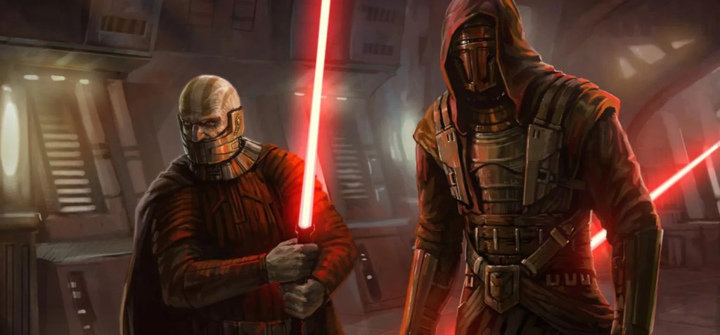 En Caballeros de la Antigua República, tomamos el rol de un soldado de la república con amnesia que toma partido en la guerra contra los Sith. Aproximadamente en mitad de la aventura descubrimos que, en realidad, somos un Lord Sith llamado Revan, un héroe de la República Galáctica. A partir de este momento, debemos decidir qué queremos ser: un despiadado Sith o un Jedi. En mi opinión, uno de los mejores midpoints que he visto.