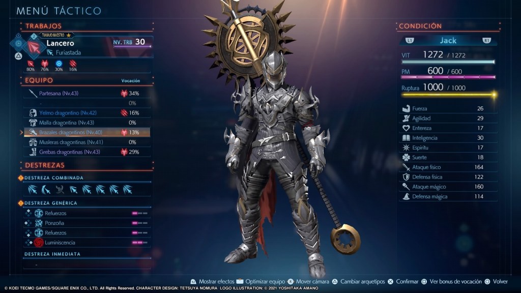 Las armas y armaduras también son clásicas de Final Fantasy, y con la función de optimizar equipo, lo tenemos muy fácil para ir equipados con lo mejor de nuestro inventario.