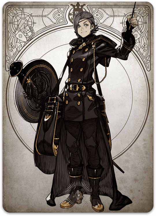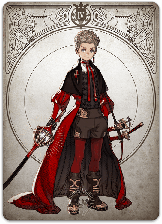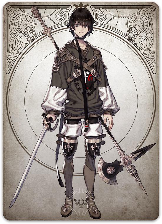 - Gladio (mantiene su nombre en inglés) – グラジオ (Gurajio): El Sirviente de la Sacerdotisa Roja es un implacable guerrero con un nivel de exigencia enorme hacia ella.