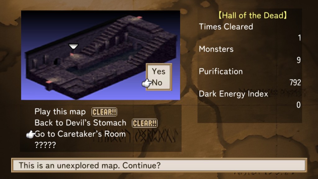Por último, el mapa no es excesivamente grande pero tampoco son pocos los lugares que podemos visitar, podemos desplazarnos a dichos lugares de igual manera utilizando el mapamundi, seleccionando la ubicación que nos interese accederemos a la mazmorra correspondiente, están constituidas por diferentes salas, algunas de ellas por no decir todas, pueden resultan algo monótonas y laberínticas dado que puedes desorientarte por ser prácticamente iguales.