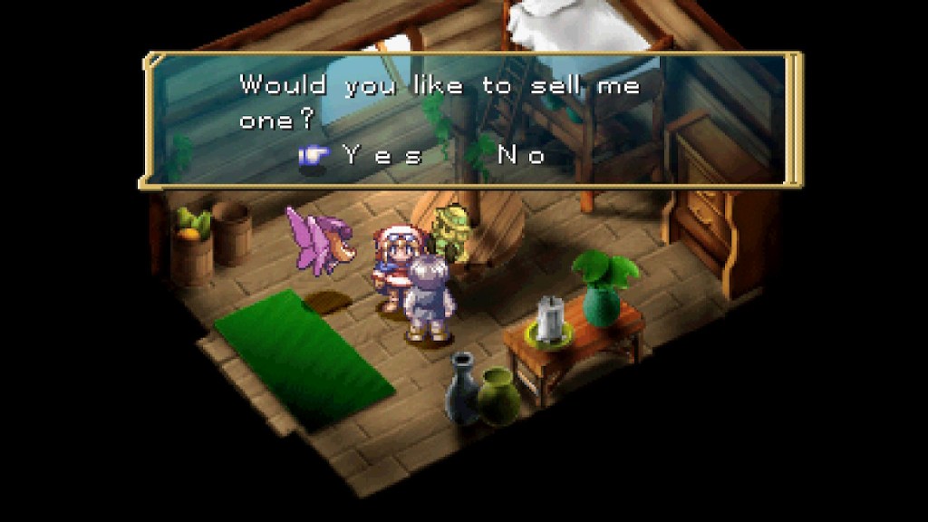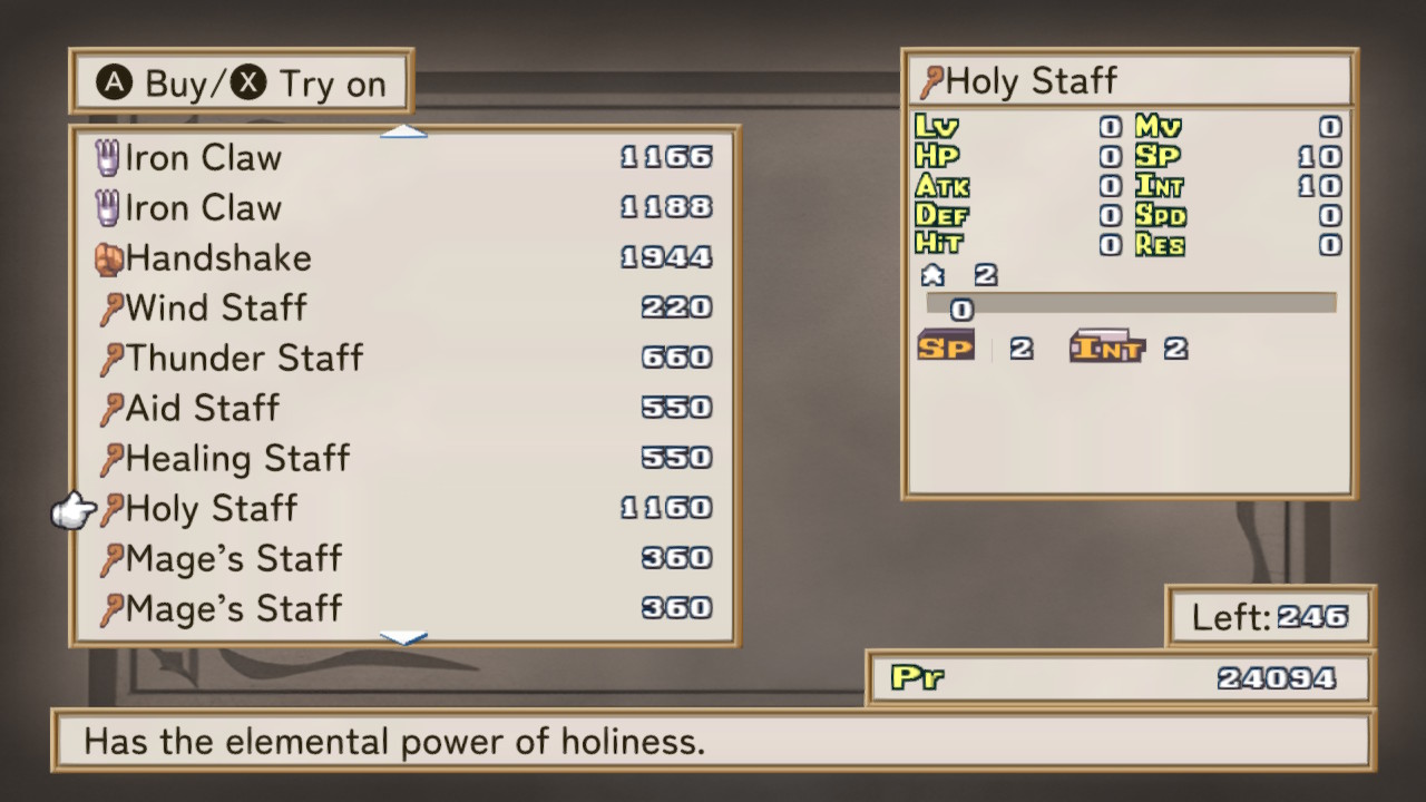 Para mejorar a nuestros personajes podemos comprar diferentes artículos que nos brindan una mejora de atributos, y de igual manera podemos adquirir distintas pociones que nos brindan apoyo en las batallas.