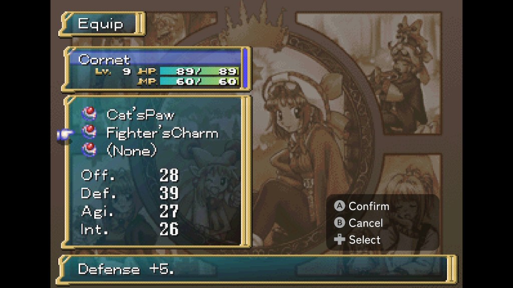 La personalización de personajes es bastante profunda. Si bien cada personaje tiene un conjunto de habilidades que aprenden automáticamente al subir de nivel, al equiparlos con distintos tipos de equipamiento con bonificaciones de otros elementos hacen que puedan subir de nivel otras estadísticas, lo que hace que vayan aprendiendo nuevas habilidades, aumentando la fuerza, la vida, etc.