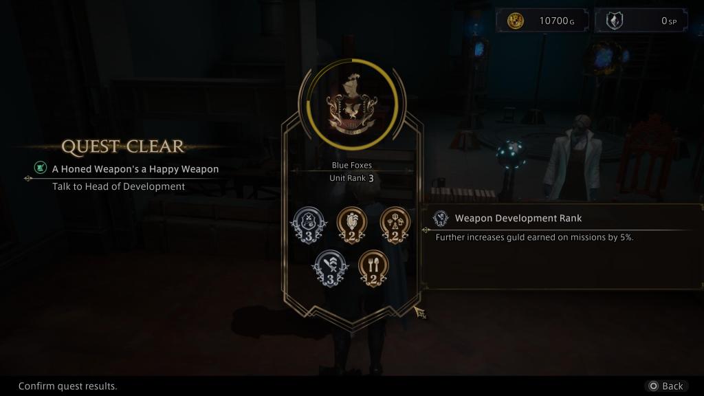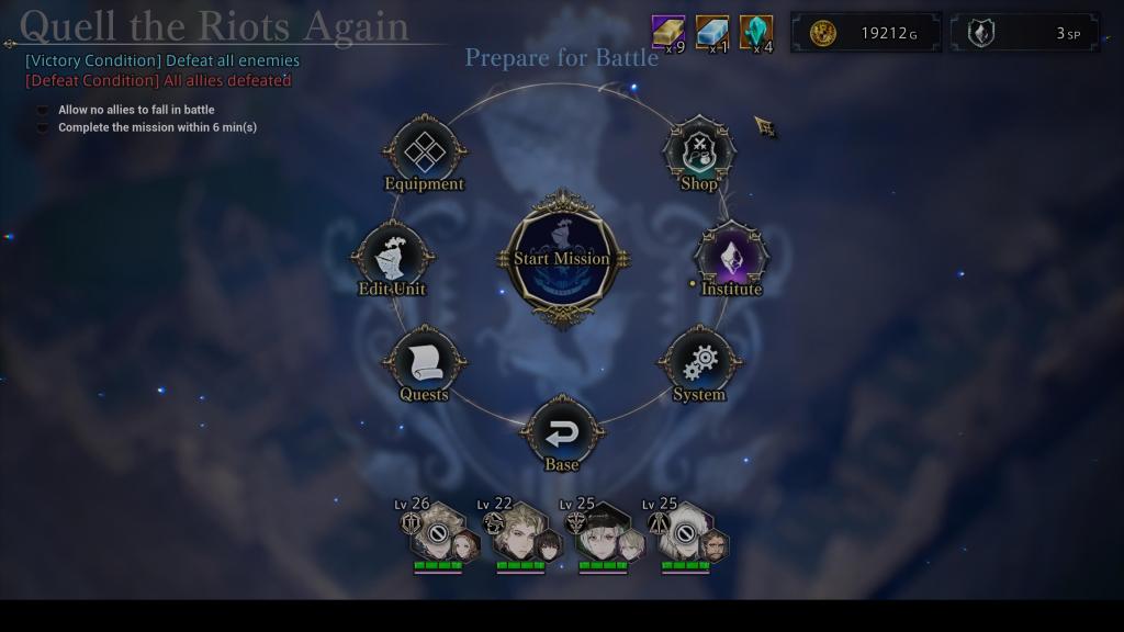 Gran parte de nuestro tiempo la pasaremos en nuestra base, preparándonos antes de cada misión reponiendo nuestras provisiones y mejorando a nuestro elenco de mercenarios. La base nos da ciertos beneficios a medida que se vaya subiendo de rango, esto se hace completando tanto misiones secundarias como principales, cada vez que subimos de rango nos permiten realizar más funciones y nos desbloquean nuevas opciones como la subida de nivel en el árbol de habilidades, desbloquear mejores armas, mejorar habilidades, orbes o comprar distinto equipamiento que además de subirnos los atributos, nos dan distintas habilidades adicionales integradas en el equipamiento.