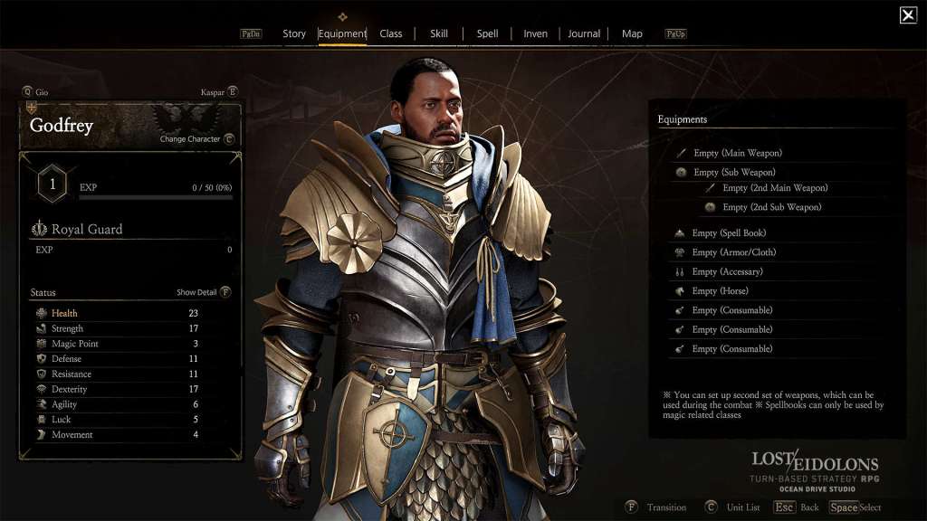 - Equipo: al progresar en el juego, puedes encontrar equipos de nivel superior y grimorios.