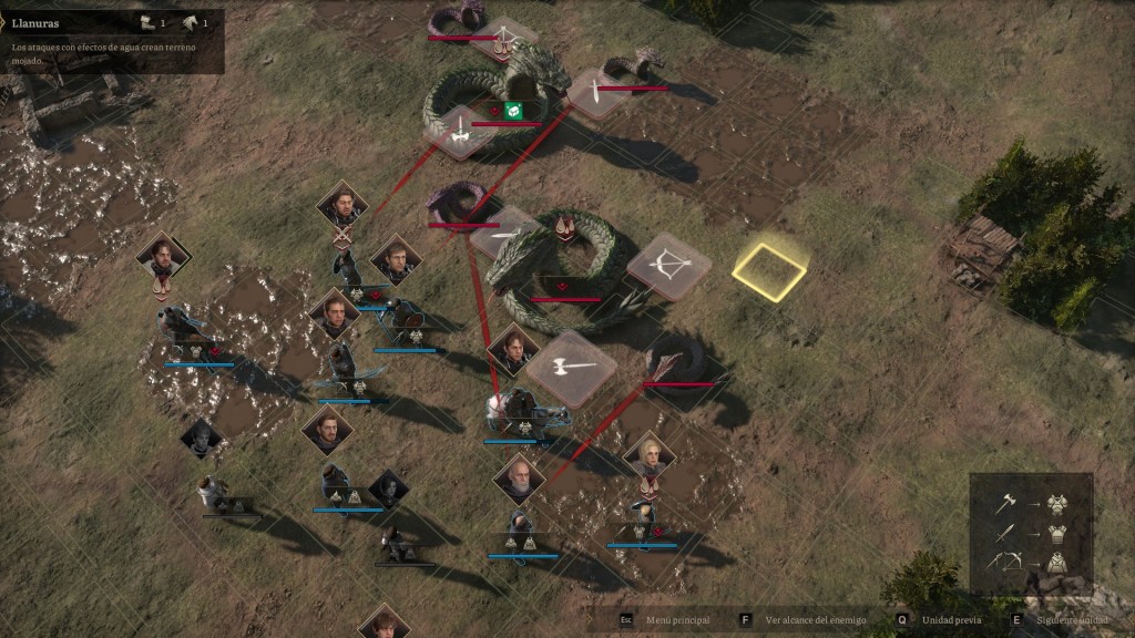 Entrando ya en batalla, Lost Eidolons propone un combate clásico por turnos sobre un escenario dividido en cuadrículas, donde en nuestro turno moveremos a nuestras unidades según su capacidad de movimiento. Es importantísimo vigilar tanto nuestra posición como la del enemigo, saber priorizar objetivos y saber cuándo defenderse o atacar. En este aspecto, Lost Eidolons presenta combates muy inteligentes cuyo reto está por encima de la media (de hecho, recientemente lanzaron un parche para bajar la dificultad de algunas misiones). Nosotros lo hemos jugado en difícil sin perma-muerte, y ha sido todo un dolor de cabeza romper la defensa del enemigo. Existe una opción que nos permite deshacer los turnos si hemos dado un mal paso, aunque tiene usos limitados, por lo tanto será imprescindible no lanzarse de cabeza si no queremos que nuestros personajes caigan como moscas.