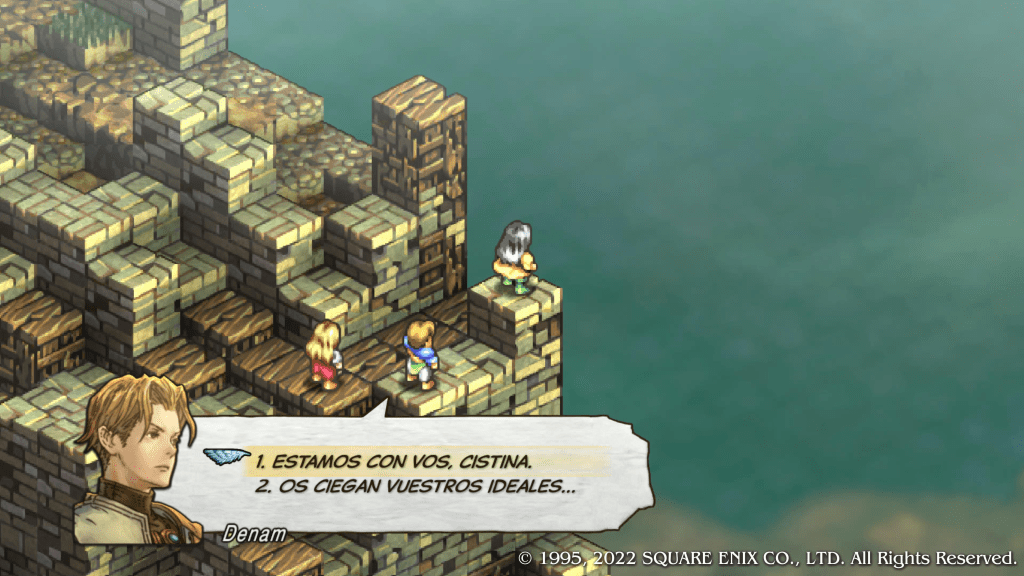 Tactics Ogre: Reborn cuenta con muchas novedades respecto a la revisión de PSP, entre ellas una magnifica traducción al español manteniendo toda la esencia de antaño y brindando una bonita experiencia tanto para los jugadores que tocan por primera vez el título como para los que no, es sin duda una compra obligatoria para cualquiera que ame el JRPG táctico.