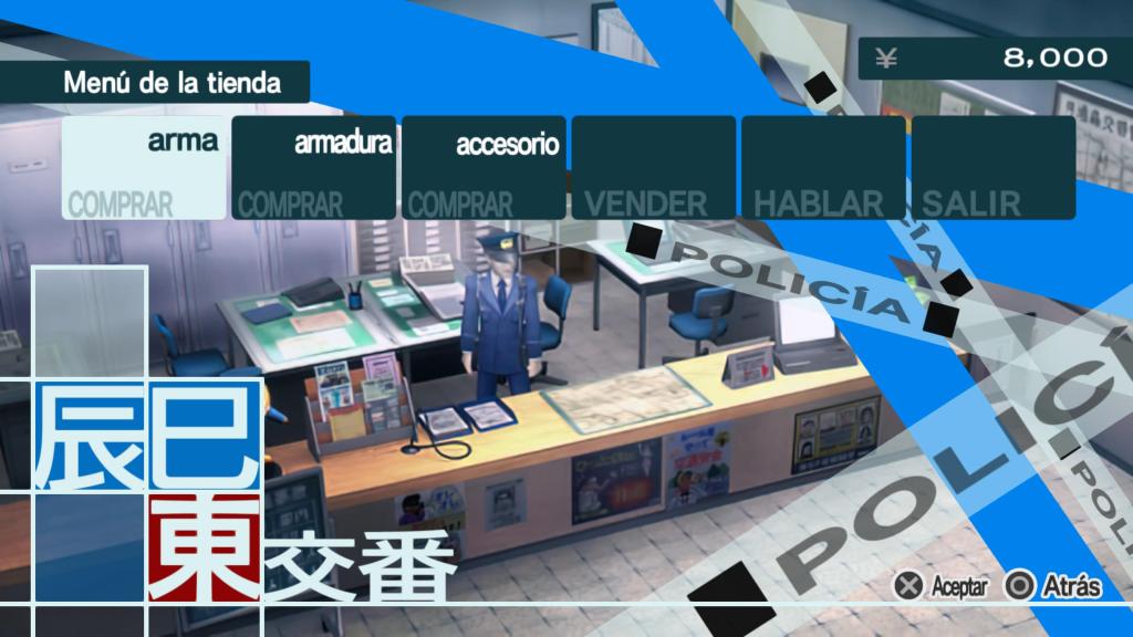 Por supuesto, además de nuestras actividades de ocio podemos visitar una serie tiendas para comprar varios objetos útiles que nos servirán en nuestras incursiones en el Tártaro, o si queremos mejorar a nuestro equipo el único sitio disponible para comprar es en la comisaría, en donde podemos encontrar una gran variedad de armas y diverso equipamiento de protección para mejorar nuestras estadísticas.