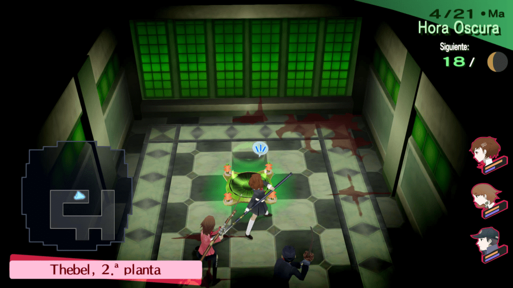 Debemos tener cuidado de no cansar demasiado a nuestro equipo, es importante rotar y dejarlos descansar de vez en cuando para estar en plenas condiciones para la batalla, para consultar el estado en el que se encuentran siempre nuestros personajes podremos hablar con Mitsuru antes de realizar una nueva incursión. Para que los personajes recuperen las fuerzas, podemos acudir a la tienda curativa Be Blue V en el centro comercial de la ciudad, aunque tendremos que pagar por el servicio o simplemente irnos a dormir temprano a nuestra residencia.
