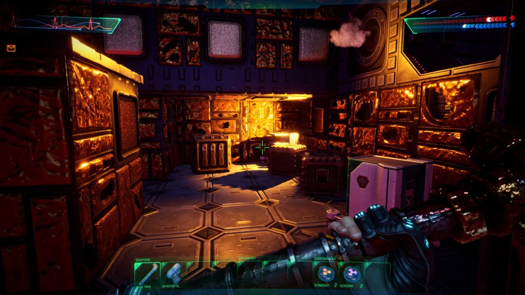 System Shock es duro de pelar. Como un experimentado hacker, debemos sobrevivir como bien podamos en la estación espacial Ciudadela para detener a Shodan, una inteligencia artificial que ha hecho estragos convirtiendo a la gente de la estación en mutantes y volviendo locos a los cyborgs que también la habitan. Esta pauta narrativa se resume en un videojuego que nos invita a explorar cada rincón sin brújula ni guía, tan solo con nuestro propio intelecto como herramienta, mientras buscamos una forma de escapar y averiguamos qué está pasando por medio de notas de voz y otros informes. Me ha gustado muchísimo el toque cinematográfico añadido a la aventura, con una iluminación muy trabajada y un aspecto gráfico que imita los píxeles «old school» de los juegos de antaño. No hay más que echar un vistazo a las capturas que acompañan este artículo para ver que el resultado es espectacular: luces de neón, rincones oscuros y sucios, mil detalles aquí y allá… System Shock Remake parece un juego desarrollado con muchísimo cariño y verdadero respeto por la obra original.