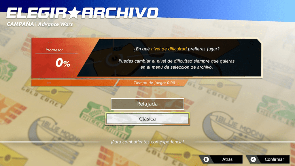 Cuando comenzamos una nueva campaña tendremos que escoger entre dos modos de dificultad: Clásica y Relajada. En la dificultad más baja que dispone el juego, que es la Relajada, dispondremos de pequeñas ventajas a la hora de combatir, como por ejemplo disponer de algunas unidades de más en el despliegue de las misiones o empezar con establecimientos ya conquistadas que nos aportarán un plus a la hora de conseguir dinero para el reclutamiento.