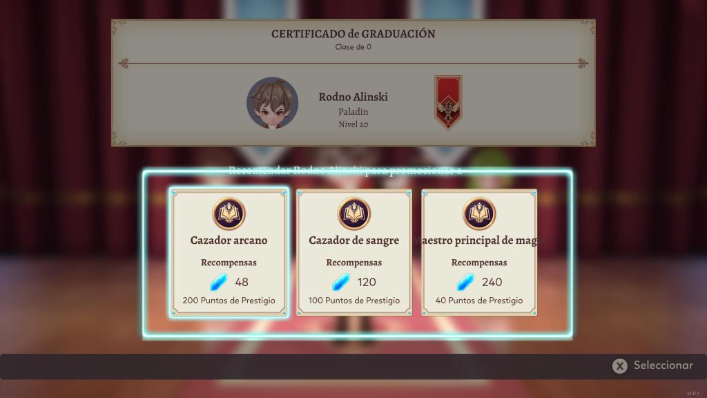 Cada final de año, graduaremos a los estudiantes que hayan permanecido durante 3 años estudiando en la academia, conforme vayamos ganando reputación más y mejores estudiantes irán llegando para estudiar en nuestra academia, tendremos que decidir nosotros mismos a los más capacitados para que ingresen. Cada estudiante que graduemos nos reportará distintas recompensas como piedras arcanas y reputación para la escuela.