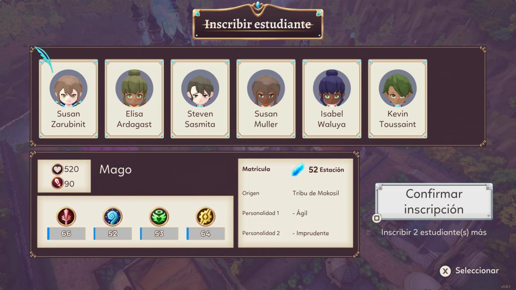 Tendremos la posibilidad de reclutar diferentes tipos de estudiantes de los diferentes reinos presentes con habilidades y talentos únicos. Cada estudiante puede pertenecer a una clase específica, como mago, guerrero o arcano, y puede progresar a través de su entrenamiento para promocionar a otras especialidades ya explicadas anteriormente.