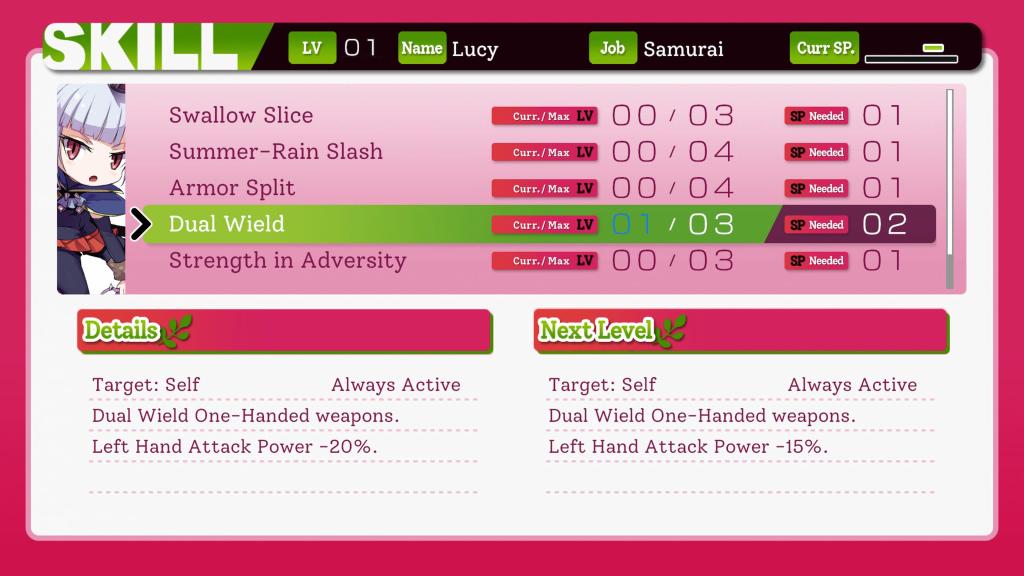 Las habilidades pueden ser aprendidas y mejoradas a través del uso de puntos de habilidad (SP). Para mejorar las habilidades de los personajes, será necesario invertir estos puntos, lo que permitirá a los jugadores personalizar y fortalecer las capacidades de sus héroes a medida que progresan en el juego.