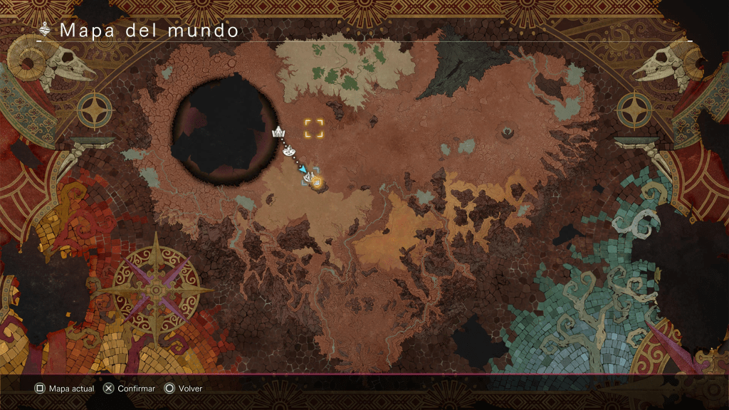 Para desplazarnos de una zona a otra, lo podemos hacer sin ningún problema desde el mapamundi, ya que al desbloquear ciertos pilares nos permiten guardar la partida y actúan como punto de respawn para cuando queramos utilizar el viaje rápido entre zonas y regiones.