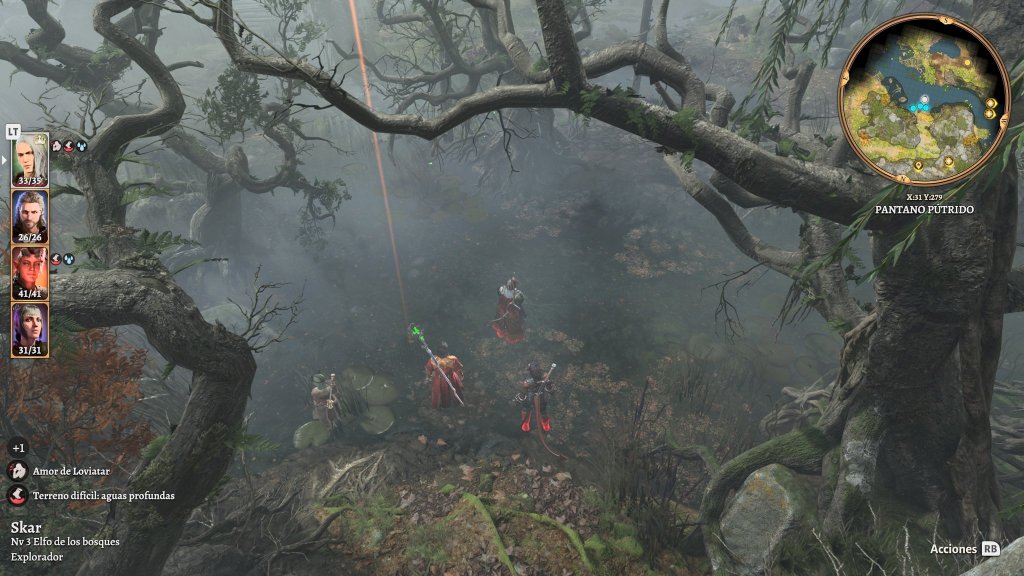 Podríamos pasarnos horas alabando el diseño de arte de BG3, pero también debemos dedicar un párrafo, como mínimo, a la fantástica banda sonora del juego. El tema principal suena con fuerza nada más acceder al menú, en una interpretación coral donde predominan los instrumentos de percusión, dotando de fuerza auditiva a las aventuras que están por venir. Y por otro lado, están los diferentes temas ambientales, desde preciosas partituras élficas que parecen reverenciar a la naturaleza, hasta temas más siniestros para momentos clave, por no hablar de la orquestación de algunas batallas importantes donde la instrumentación alcanza grandes cotas de épica.