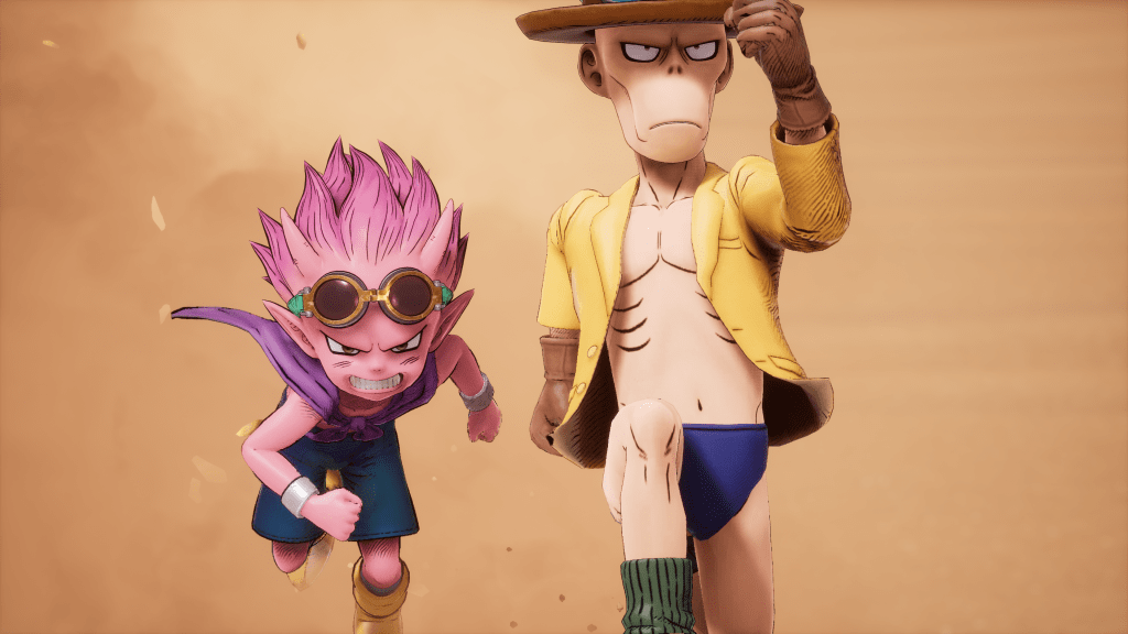 La propia historia original se vale de vehículos tanto para el desplazamiento, como para el combate. A falta de recibir el oneshot para leerlo, puedo decir que el videojuego añade varias capas adicionales para hacerlo más atractivo a los mandos. Con múltiples pueblos nuevos y vehículos con funciones diferentes, el gameplay gana puntos. Asimismo, si bien la historia que cuenta es la misma que el anime, se toma la libertad de incluir nuevos personajes, pequeñas subtramas y algún cambio en el desarrollo de los hechos. Aunque no llega a alterar los pilares de la trama.