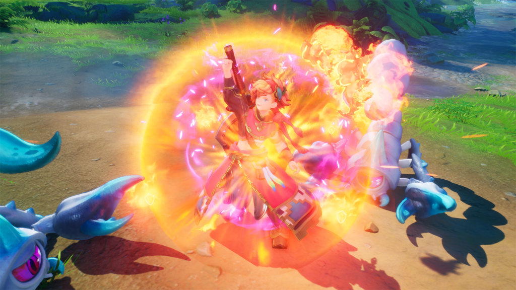 Ryosuke Yoshida: Teníamos que crear las batallas y el sistema de juego de forma que resultaran divertidos para los aficionados a los juegos de acción, pero que también tuvieran en cuenta a una gran variedad de jugadores, incluidos los más jóvenes. Diría que eso fue lo que me pareció el mayor reto. Si optáramos por un sistema muy simplista, perdería profundidad y rejugabilidad como juego, y todo el mundo pensaría que estábamos dando prioridad a dar una vida fácil al equipo de desarrollo y no teníamos en cuenta al jugador. Para evitar que los jugadores se sintieran así, nos aseguramos de que los elementos que se mantuvieran simples tuvieran razones sólidas para serlo y un trasfondo convincente que los anclara en el entorno. Por ejemplo, tener ocho naves elementales y ocho clases porque sus poderes derivan de los ocho elementales mismos.