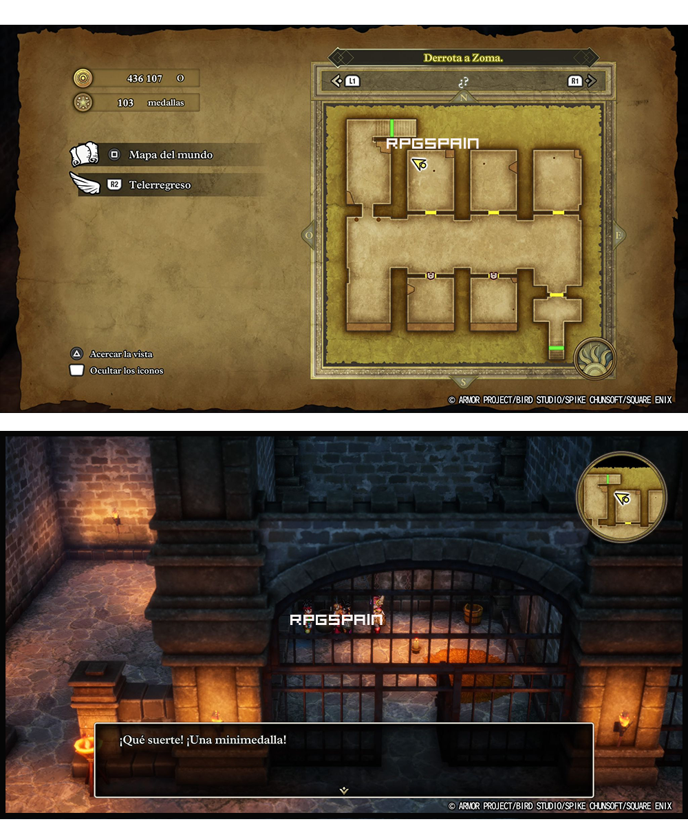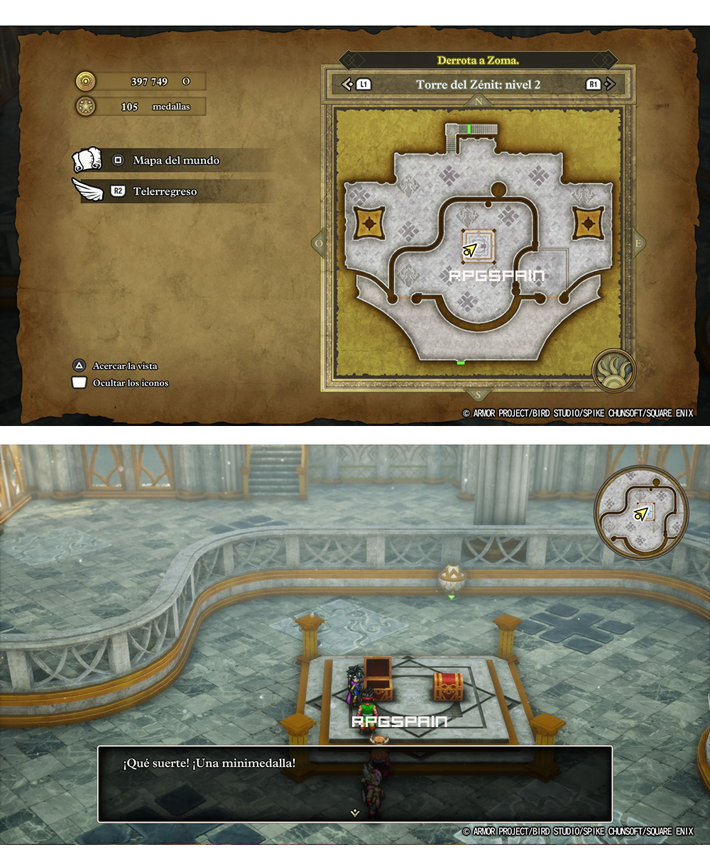 | Ciudadela de Zoma: sótano 4. Siguiendo el camino hacía el jefe, veremos 4 cofres. El primero de la izquierda tendrá la mini medalla. | ![]() |
