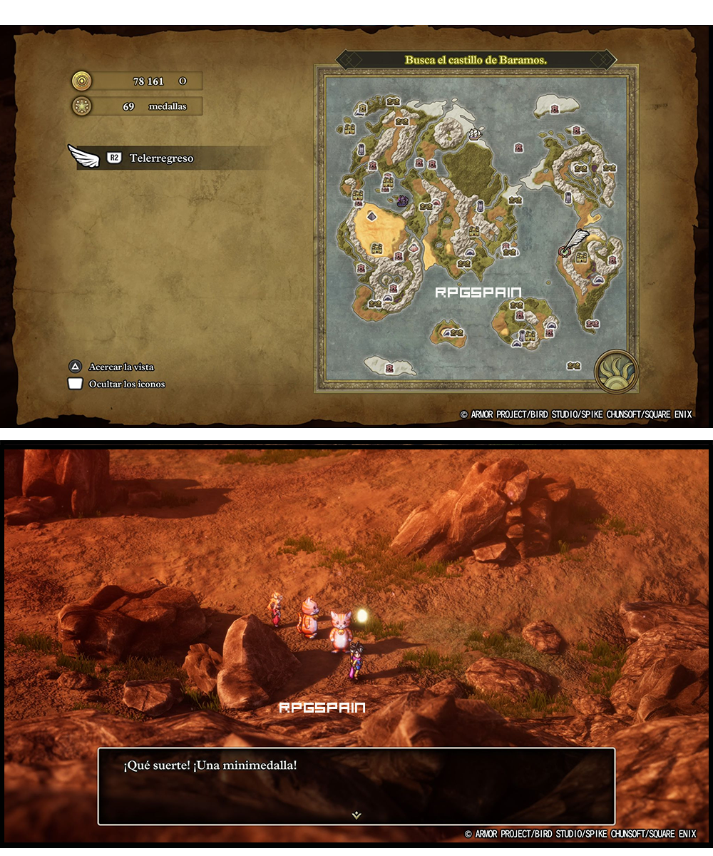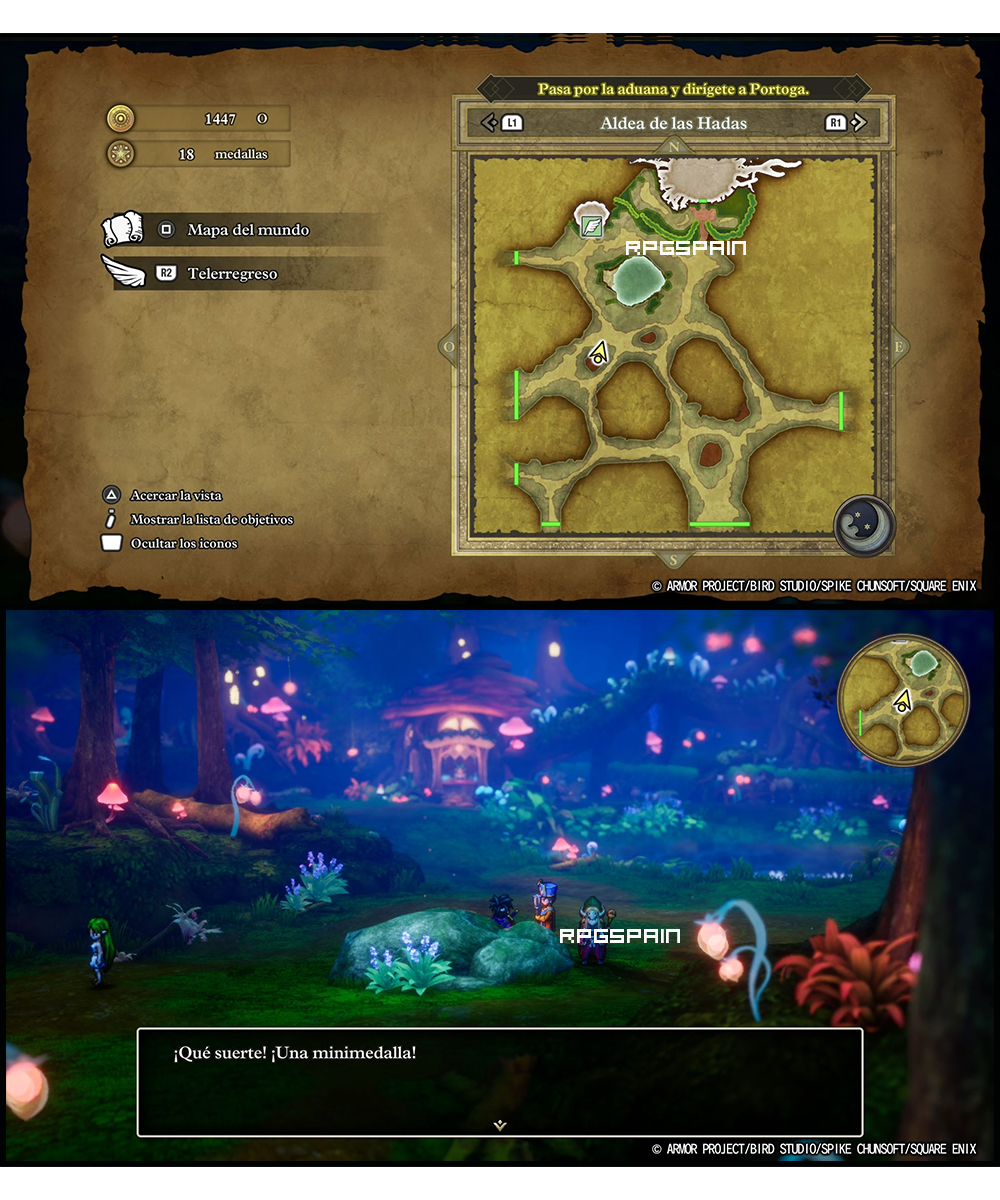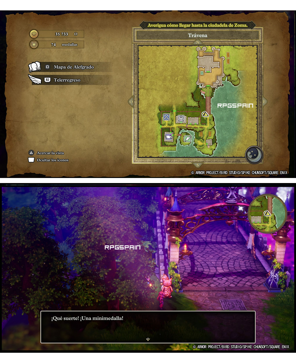 Trofeo de historia. Una vez que hayamos comenzado la aventura y hayamos visitado al rey, tendremos la posibilidad de abandonar el pueblo natal del protagonista (donde se encuentran 2 mini medallas). El trofeo saltará en el momento que usemos cualquiera de las salidas (al oeste, sur o este) y aparezcamos en el mapamundi.