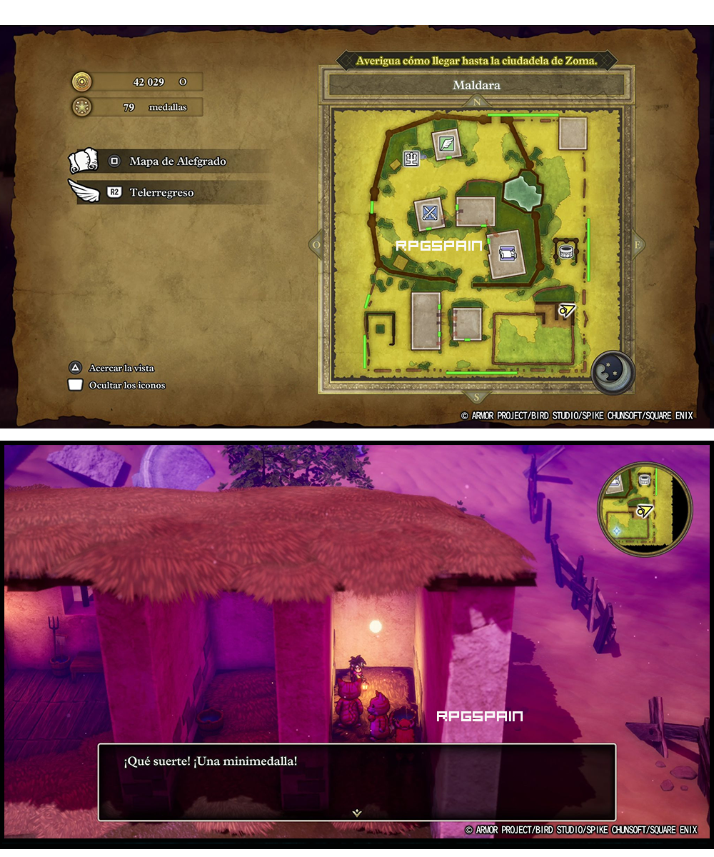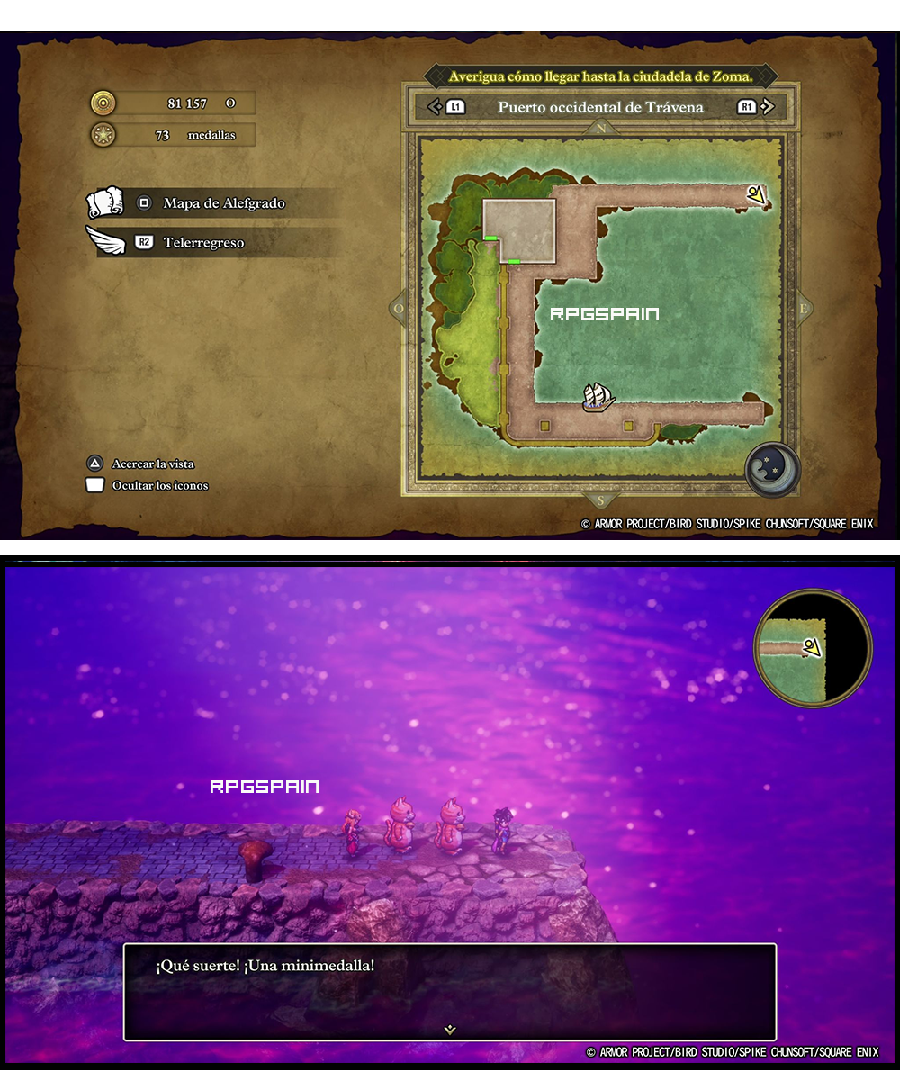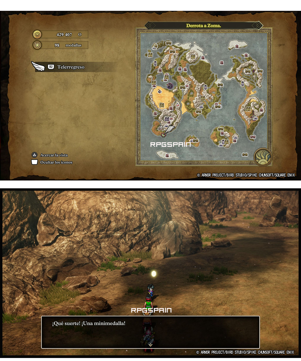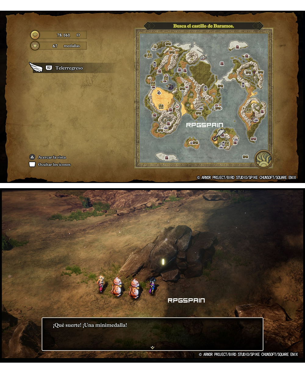 Trofeo de historia. Una vez que hayamos comenzado la aventura y hayamos visitado al rey, tendremos la posibilidad de abandonar el pueblo natal del protagonista (donde se encuentran 2 mini medallas). El trofeo saltará en el momento que usemos cualquiera de las salidas (al oeste, sur o este) y aparezcamos en el mapamundi.