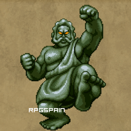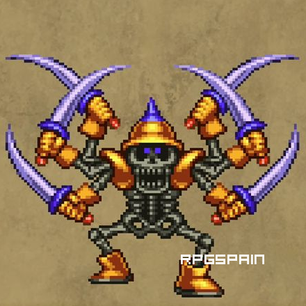 Este jefe es recomendable en nivel 32 o superior ya que es bastante complicado porque puede atacar hasta 3 veces seguidas. Comenzamos con nuestro multi fortalecimiento y la furia salvaje para ir allanando el terreno (Ya sabes que le sigue después, ataca atacante y marabunta monstruosa). Super helada puede llegar a ser muy interesante aquí ya que el jefe es débil contra el hielo. Los pendientes ignífugos y la barrera mágica (sólo si tienes al sacerdote o al sabio) también pueden hacer las cosas más fáciles. En este combate el héroe/heroína solo se dedicarán a curar y resucitar por lo que podemos ir usando super protección (nivel 20-21) para mantenerla siempre a ralla. Aunque puede que las cosas se pongan complicadas, lo cierto es que si tenemos dos doma bestias será un paseo.