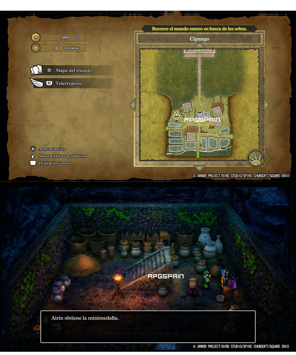 Con nuestro flamante barco, vamos hacía Cipango que está en la isla al sur de la abadía vocationis (dejando arriba también Mur). Allí veremos una escena bastante reveladora respecto a los tejemanejes de la reina. Avanzamos por el pueblo y buscamos las escaleras al noroeste (donde también hay una mini medalla) para encontrar a una chica escondida entre las tinajas que nos dará mas información de lo que está ocurriendo.