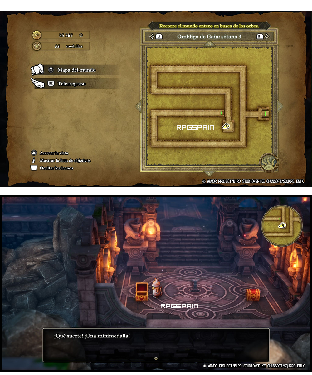 Cuando lo derrotemos, conseguiremos el orbe azul, nos saltará el trofeo y podremos coger la mini medalla del cofre del tesoro.