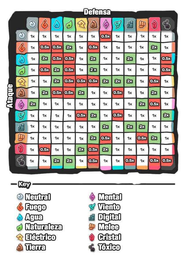 | •Tener un equipo equilibrado de 6 Temtem con distintos tipos para una mayor cobertura y aprovechar las sinergias de los ataques con los distintos tipos de elementos. •Criar temtem lleva mucho tiempo,así que lo mejor es comprarlos en la subastas con stats perfectos para las revanchas de Dojo. •Invertir con prioridad el dinero(Pansun) en tener temtem perfectos desde el inicio(Hay métodos para ganar dinero). •Tener una montura y acceso al viaje rápido a través de los transportadores hará que ganemos tiempo en muchos sentidos(Evitaremos temtem salvajes, llegaremos antes a las zonas etc). Mientras no tengamos nada de eso las bombas de humo son la mejor opción. •Conocer bien las debilidades y fortalezas de los Tems pueden marcar la diferencia entre la victoria o la derrota, sobre todo en Revanchas de Dojo y Guaridas así que os dejo una tabla de elementos. |